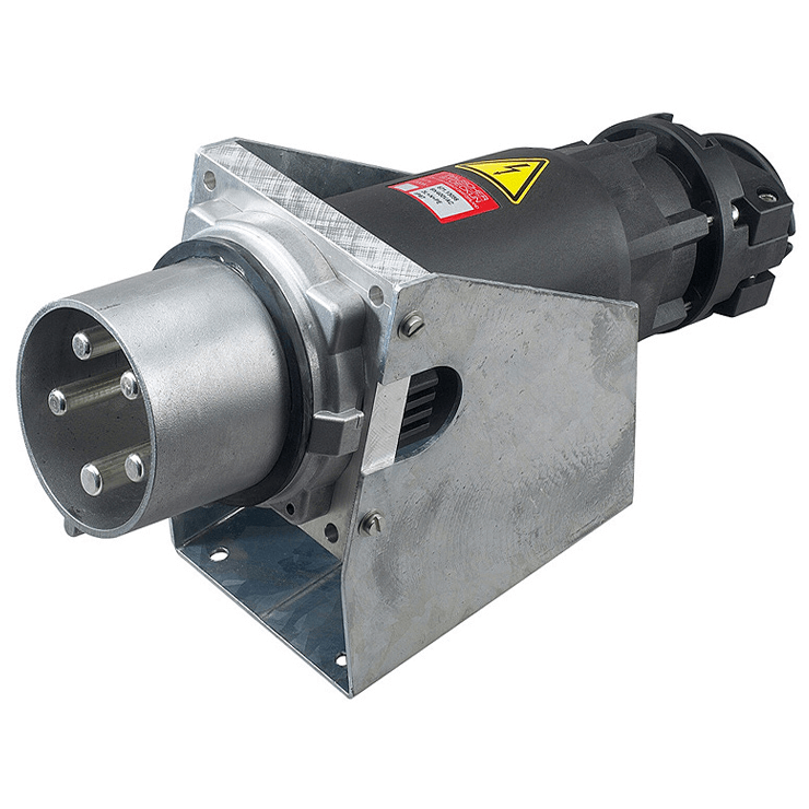 Der Gerätestecker lässt sich dank integrierter Wandhalterung schnell und sicher an Wänden und beweglichen Baumaschinen montieren. Die abgewinkelte Form erleichtert das Ein- und Ausstecken und gewährleistet eine komfortable sowie effiziente Handhabung.