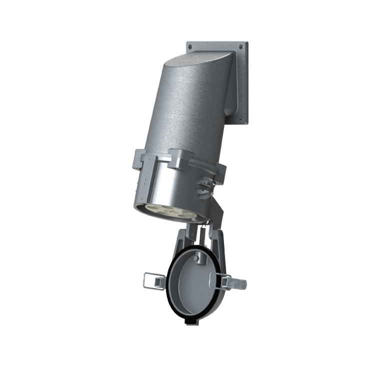 The angled panel-mount socket is used in switchgear, construction machinery, and industrial buildings. Its special design allows for particularly easy connection to the coupling, while its robust construction, high load capacity, and reliable connection technology ensure maximum safety and long-term functionality, even under demanding conditions.