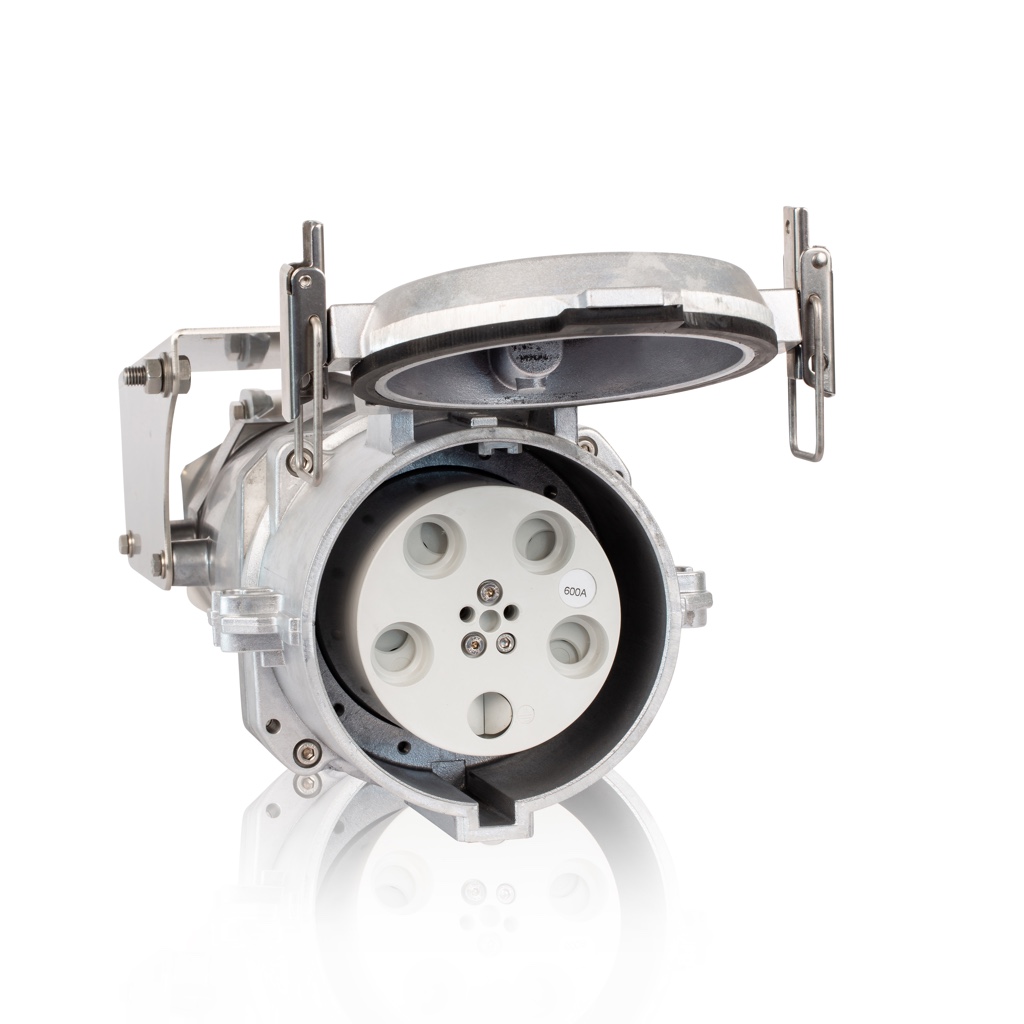 The device socket can be quickly and securely mounted on walls and mobile construction machinery thanks to its integrated wall bracket. Its angled design makes plugging and unplugging easier, ensuring convenient and efficient handling.”