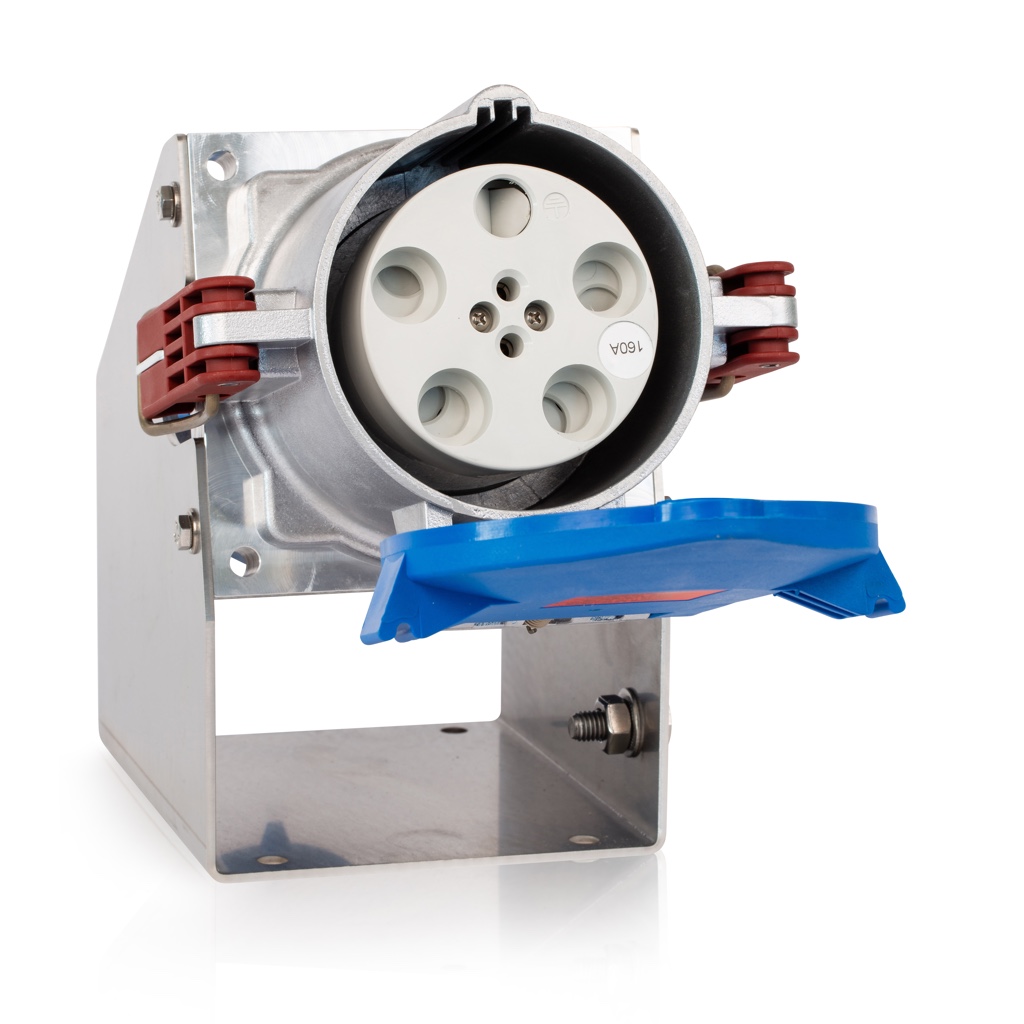 The device socket can be quickly and securely mounted on walls and mobile construction machinery thanks to its integrated wall bracket. Its angled design makes plugging and unplugging easier, ensuring convenient and efficient handling.